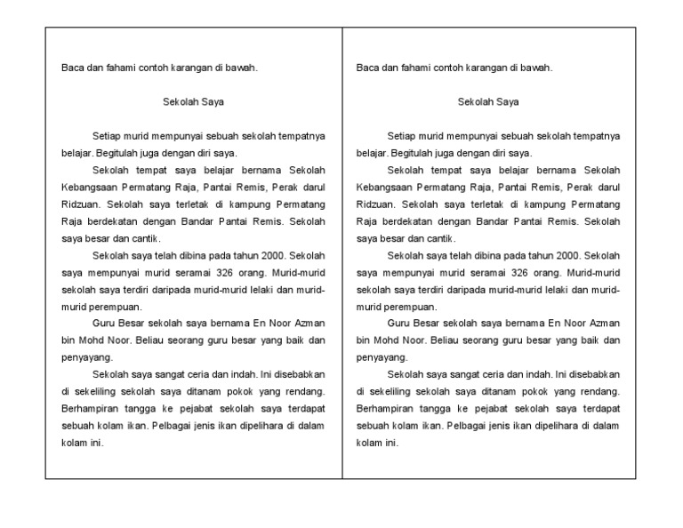 Contoh Karangan Sjk Saya